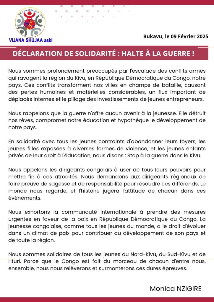 Déclaration de solidarité: Halte à la Guerre