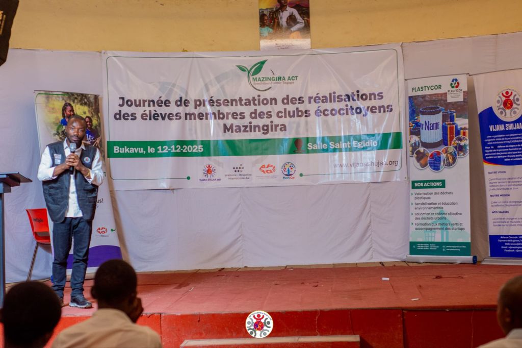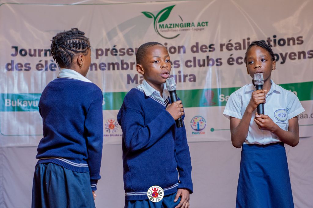Ce vendredi 12 décembre, nous clôturé nos séances de sensibilisation parascolaires dans plusieurs écoles de la ville de Bukavu par une cérémonie de présentation des réalisations des élèves membres des clubs écocitoyens. Cette activité s’inscrit dans le cadre du programme Mazingira Act, qui vise à promouvoir l’écocitoyenneté et la participation des jeunes à la protection de l’environnement.